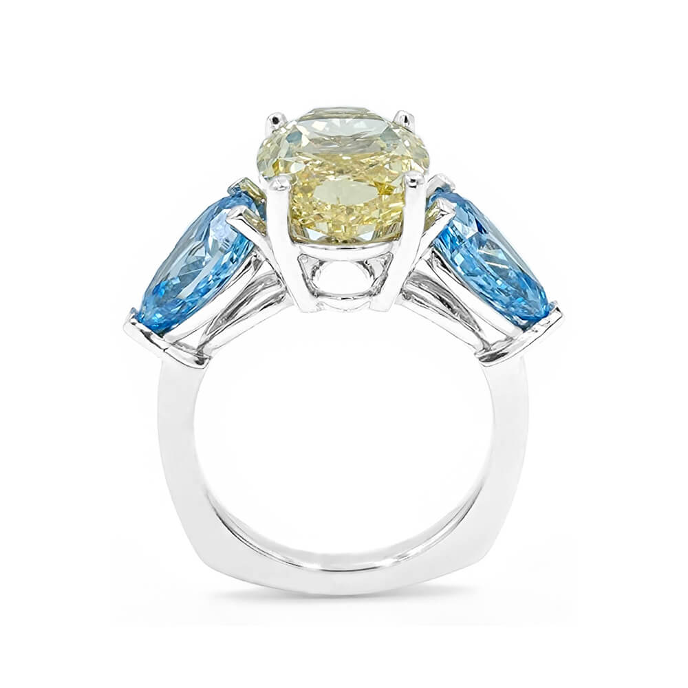 14K White Gold Yellow and Blue Lab Grown Gemstone Ring